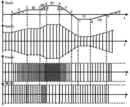 се дадени графиките на модулиращия сигнал и на аШИМ(t). Вижда се ,че при нарастване на аМ(t) импулсите увеличават вирочината